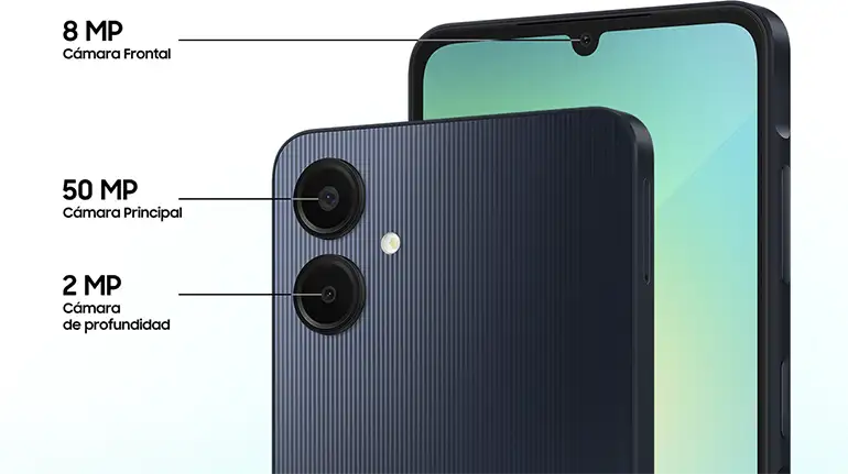 El Samsung A06 es un celular confiable, perfecto para quienes quieren algo simple, funcional y duradero. Con una pantalla de 6.7 pulgadas, es cómodo para ver series, usar WhatsApp o navegar. Su cámara principal de 50 MP te permite tomar fotos de buena calidad y, gracias a su batería de 5000 mAh, puedes usarlo durante horas sin interrupciones. Lo mejor: está disponible en distintas versiones, así puedes elegir la que mejor se ajuste a tu presupuesto y estilo.