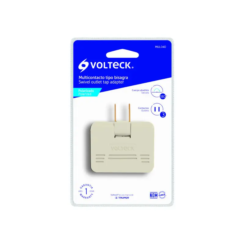 Adaptador Tomacorriente 3 Puertos Tipo Bisagra Lateral Volteck 46812