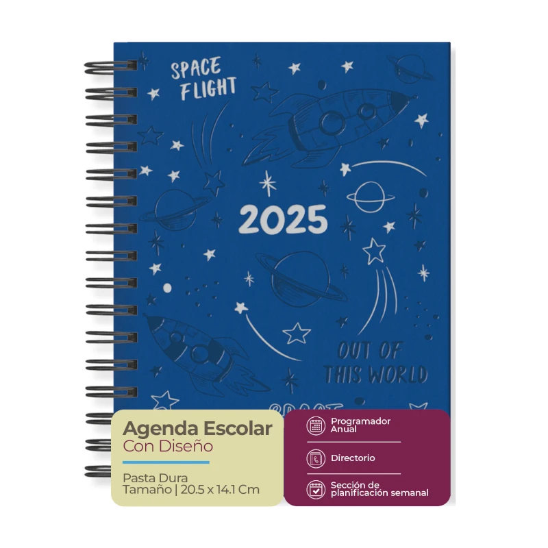 Agenda Espiral 2025 Ferrini Con Diseño Azul Galaxi 01