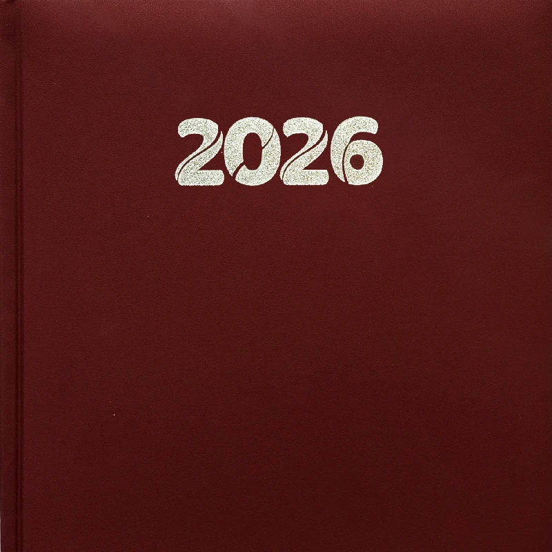 Elegante y sobria, con acabado tipo cuero color vino y grabado metálico del año. Ideal para ejecutivos que buscan estilo y organización.