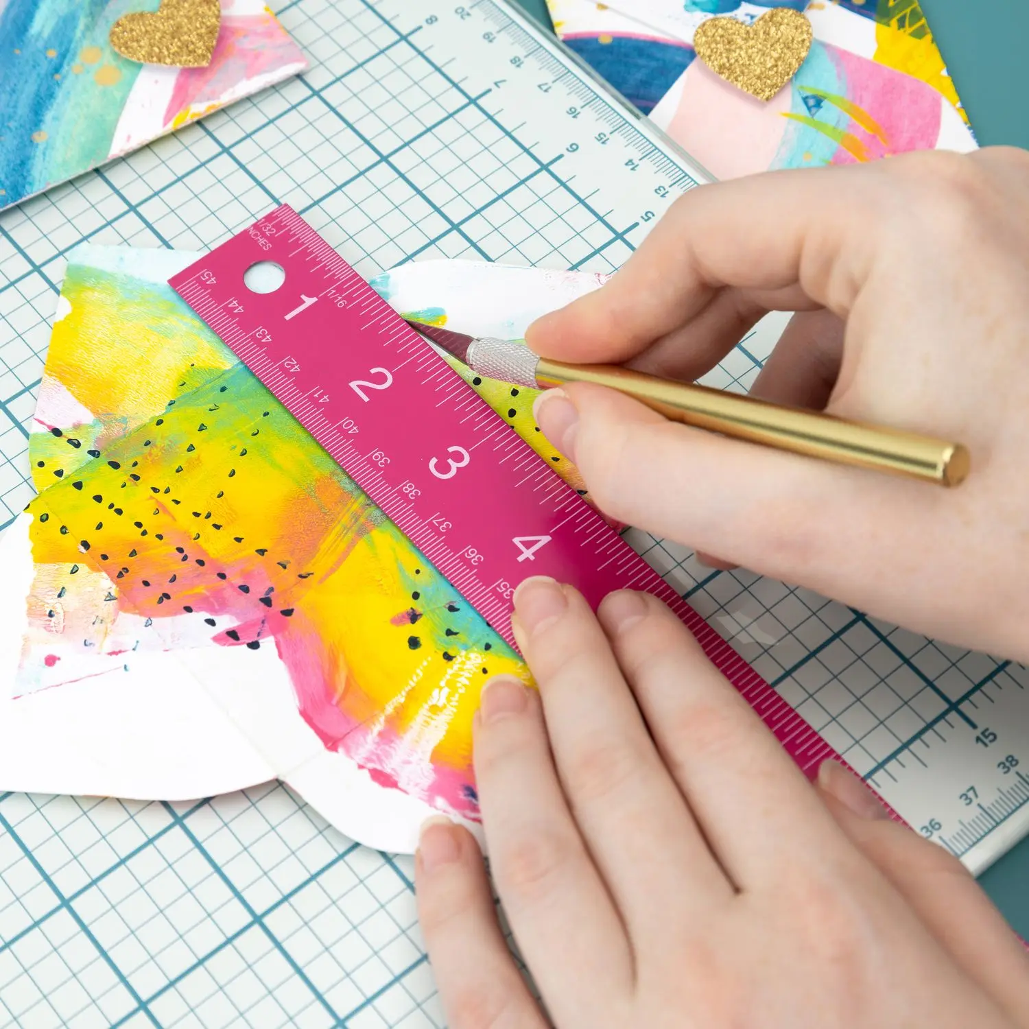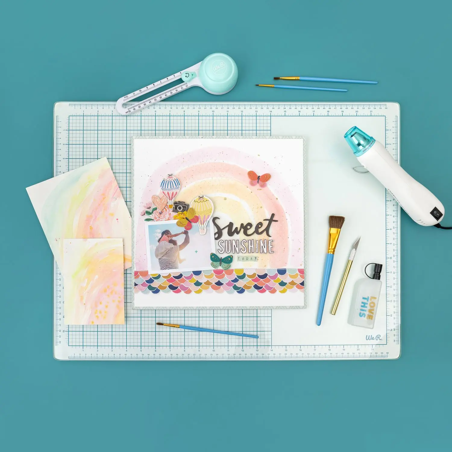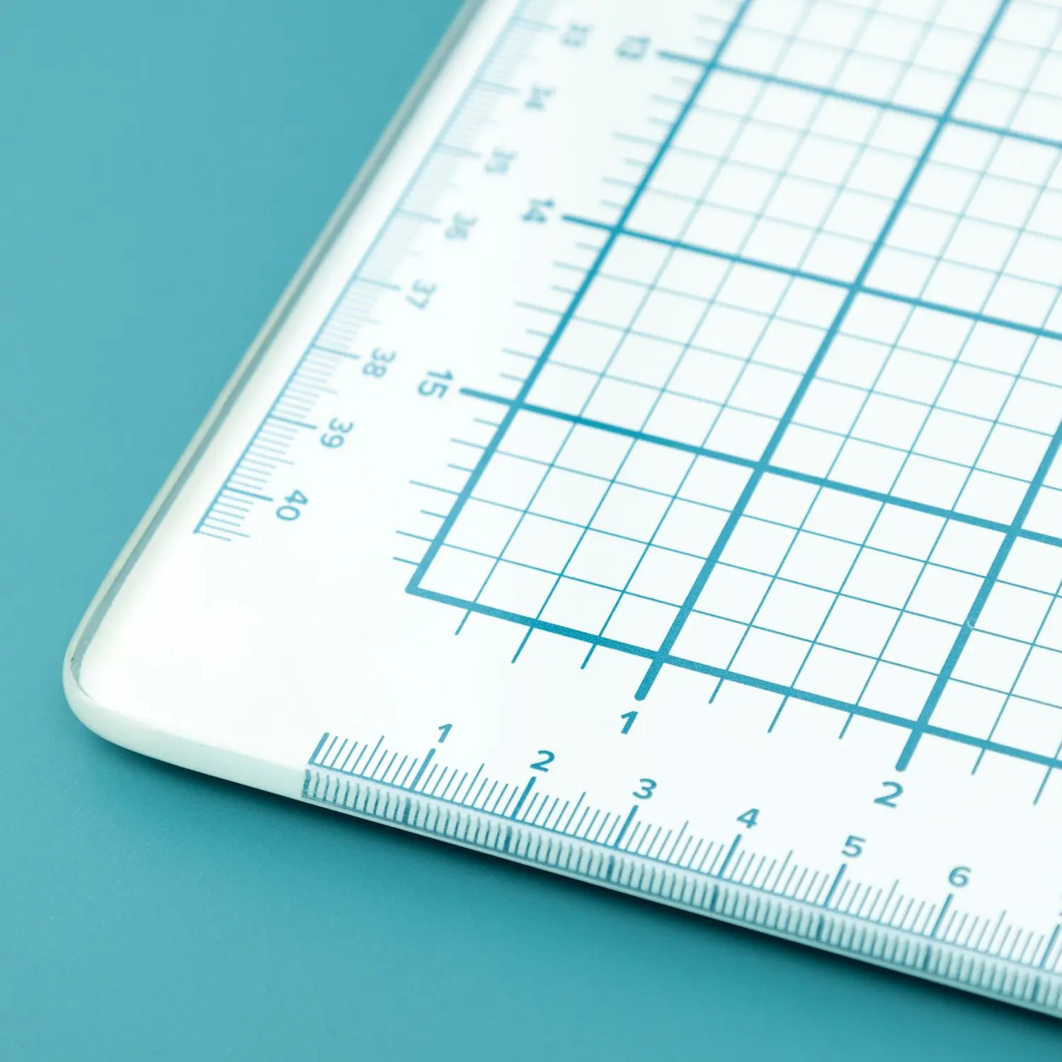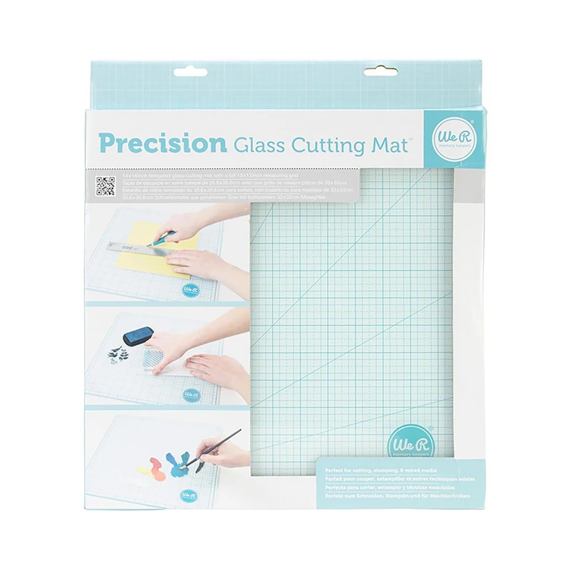La alfombrilla para cortar vidrio We R Memory Keepers es mucho más que una alfombrilla para cortar: es perfecta para cortar, estampar y utilizar medios mixtos. Cuenta con un corte suave y preciso, una superficie de trabajo duradera, vidrio templado, líneas de medición de ángulos, paleta de pintura y mezcla, es seguro para pegamento caliente, una superficie limpia para estampar, pies antideslizantes, una rejilla de trece pulgadas fácil de limpiar y tiene medidas métricas y en pulgadas. Este paquete contiene una alfombrilla para cortar vidrio templado de 14 x 14 pulgadas con una rejilla de medición completa de 13 x 13 pulgadas. Importado.