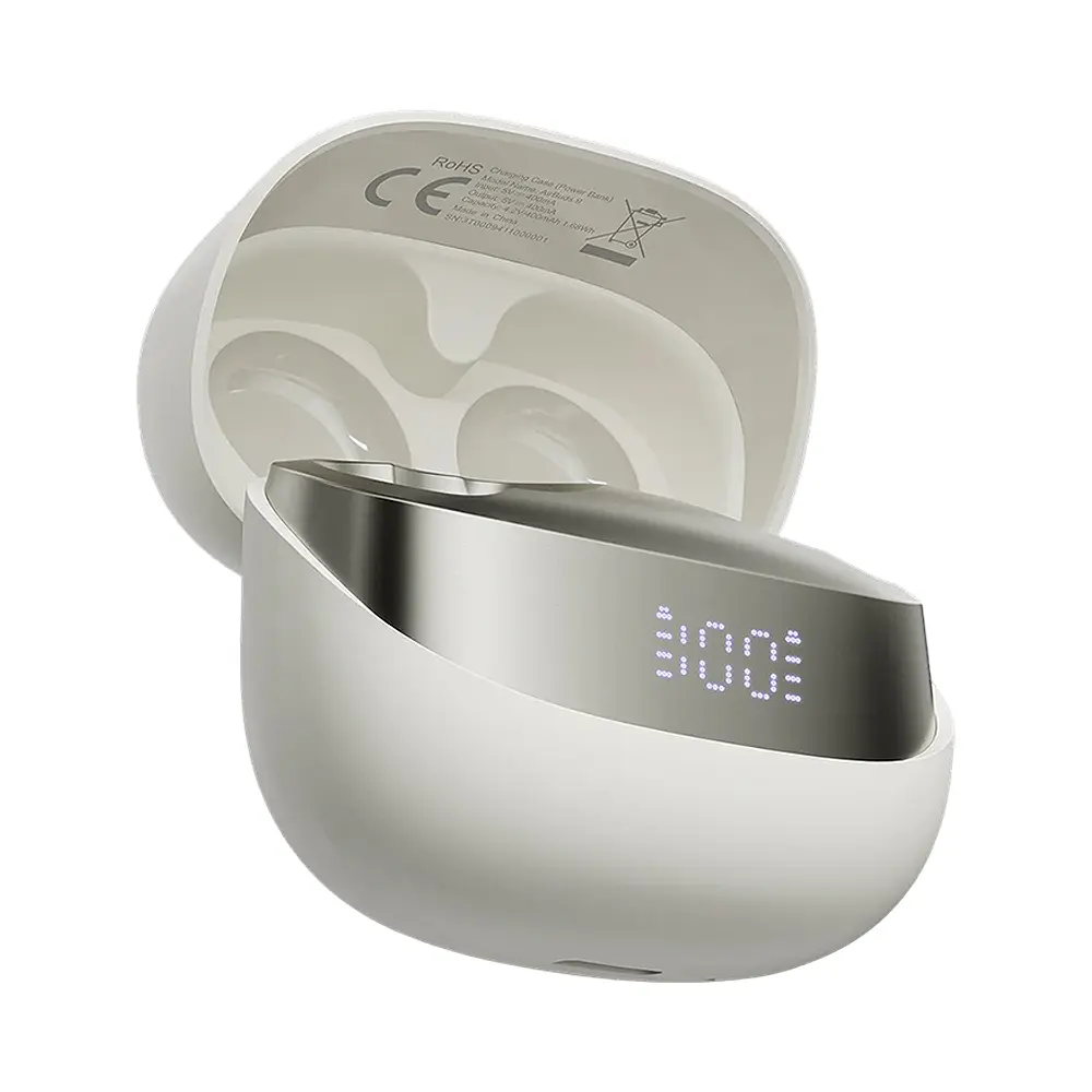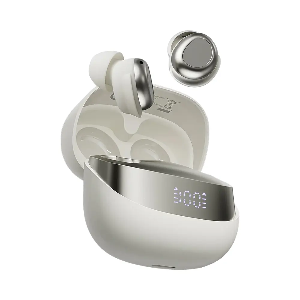 El diseño compacto de los auriculares garantiza un uso cómodo durante mucho tiempo y un modo de suspensión especial permite utilizarlos incluso en reposo sin molestias. La batería proporciona un largo tiempo de funcionamiento: hasta 5 horas desde una carga hasta 24 horas utilizando un estuche de carga, que está equipado con una pantalla LED que muestra el nivel de la batería en tiempo real. La carga rápida te permite hacer que tus auriculares vuelvan a funcionar en cuestión de minutos.