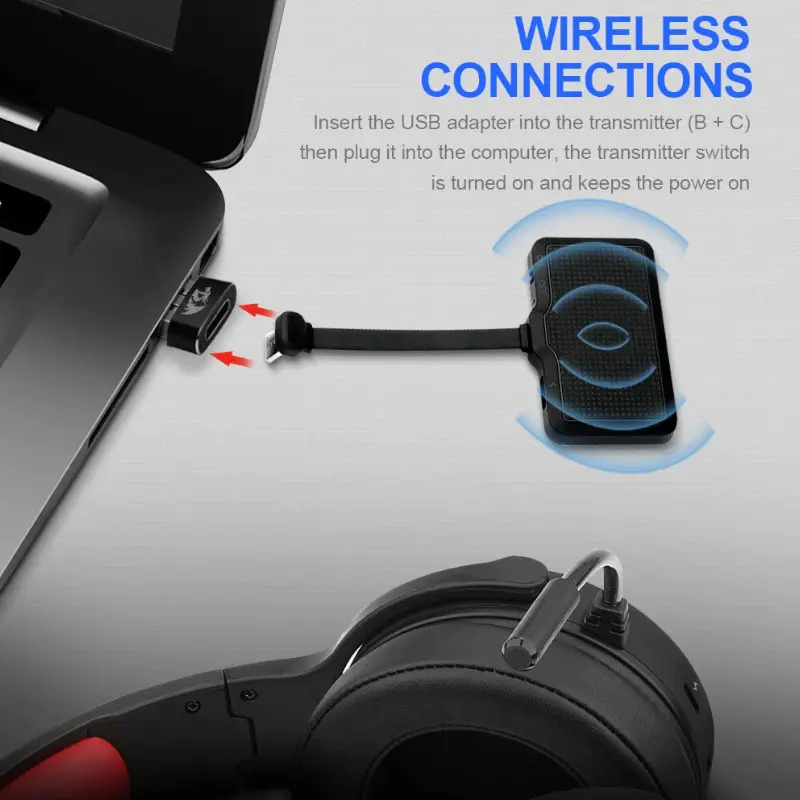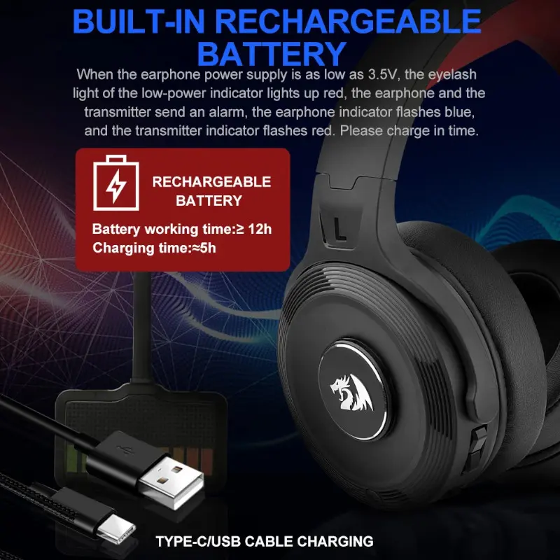 Audifono Redragon Gaming Pelops Inalambrico 7.1 Negro Con Microfono H818