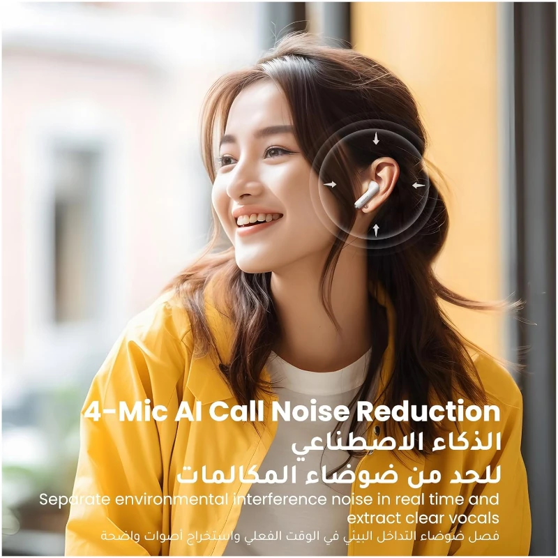 - Reducción de ruido de llamadas con IA de 4 micrófonos: separa el ruido de interferencia ambiental en tiempo real y extrae voces claras.