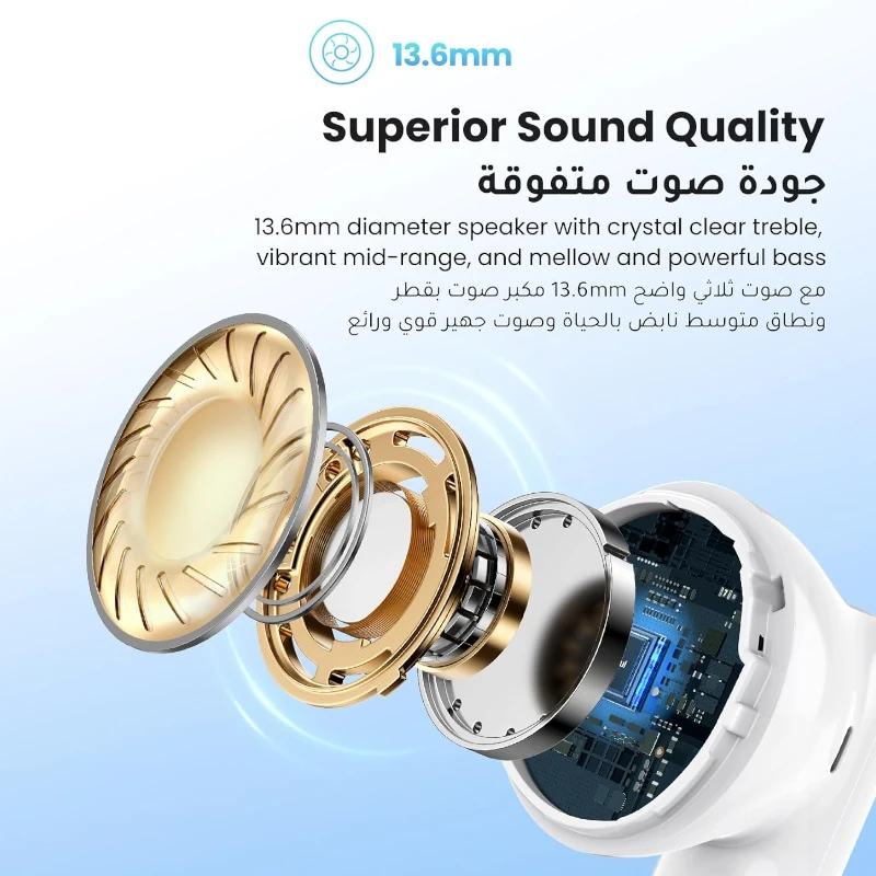 - Calidad de sonido superior:Altavoz con diámetro de controlador de 13,6 mm con agudos nítidos, rango medio vibrante y graves suaves y potentes.