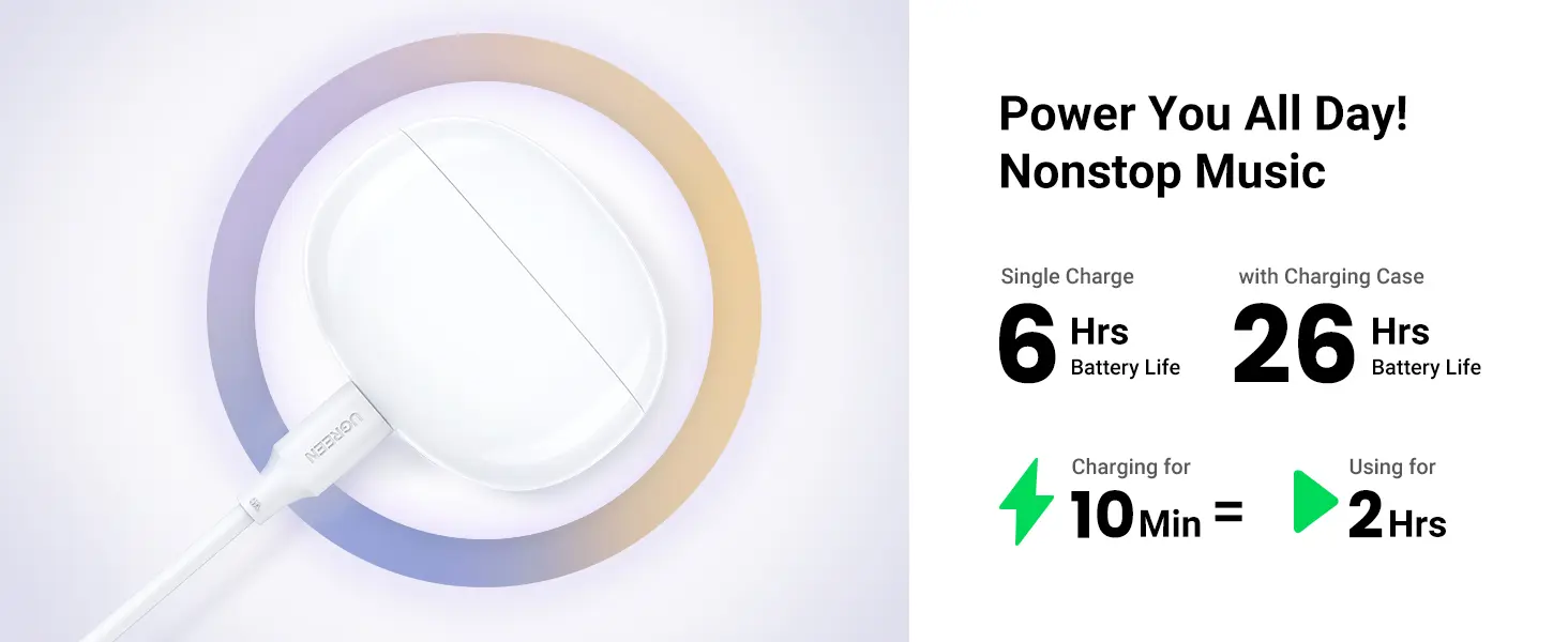 - Tiempo de reproducción ultra largo: 26 horas de duración de la batería.