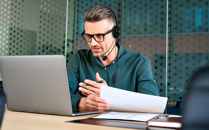 Auricular estéreo liviano para llamadas nítidas en línea: Ideal para reuniones y colaboración virtual, con diadema ajustable y almohadillas suaves para usarlo todo el día con comodidad.