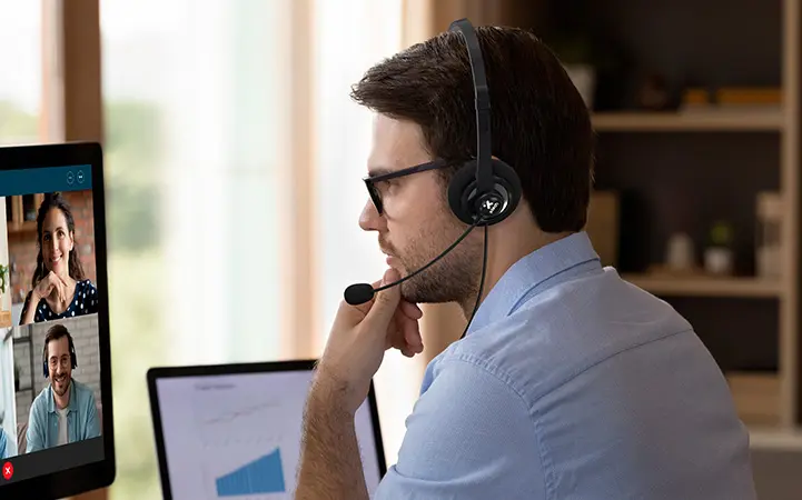 - Auriculares estéreo livianos ideales para llamadas de voz y video, reuniones virtuales y colaboración en línea.