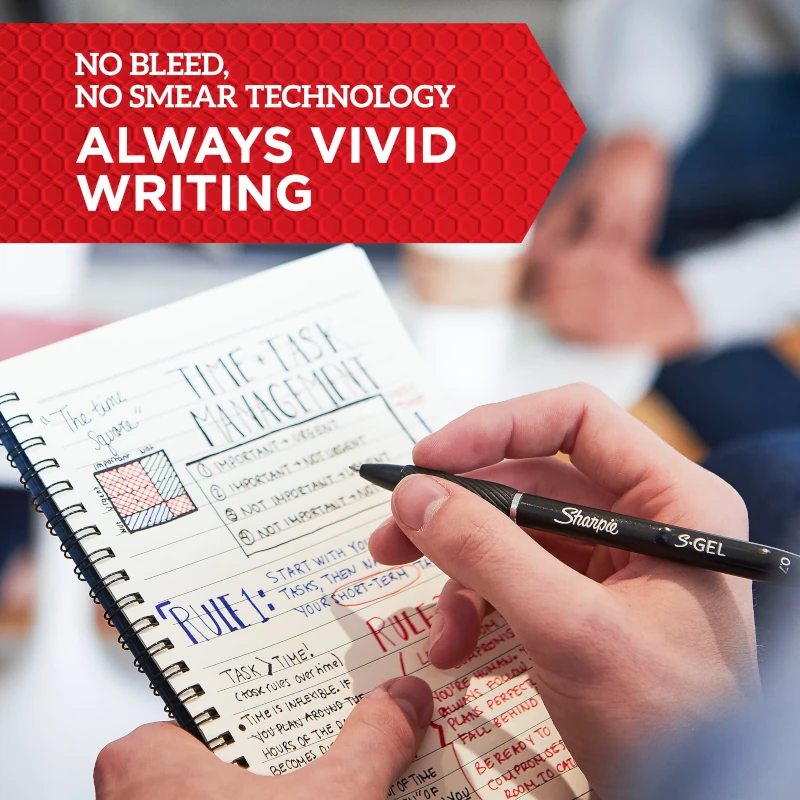 Experimente un bolígrafo de gel de alto rendimiento con el Sharpie S-Gel. Con tecnología que no mancha ni traspasa, este bolígrafo Sharpie ofrece una experiencia de escritura excepcional. El bolígrafo de tinta de gel presenta colores intensamente llamativos para una escritura siempre vívida, mientras que el agarre de goma contorneado