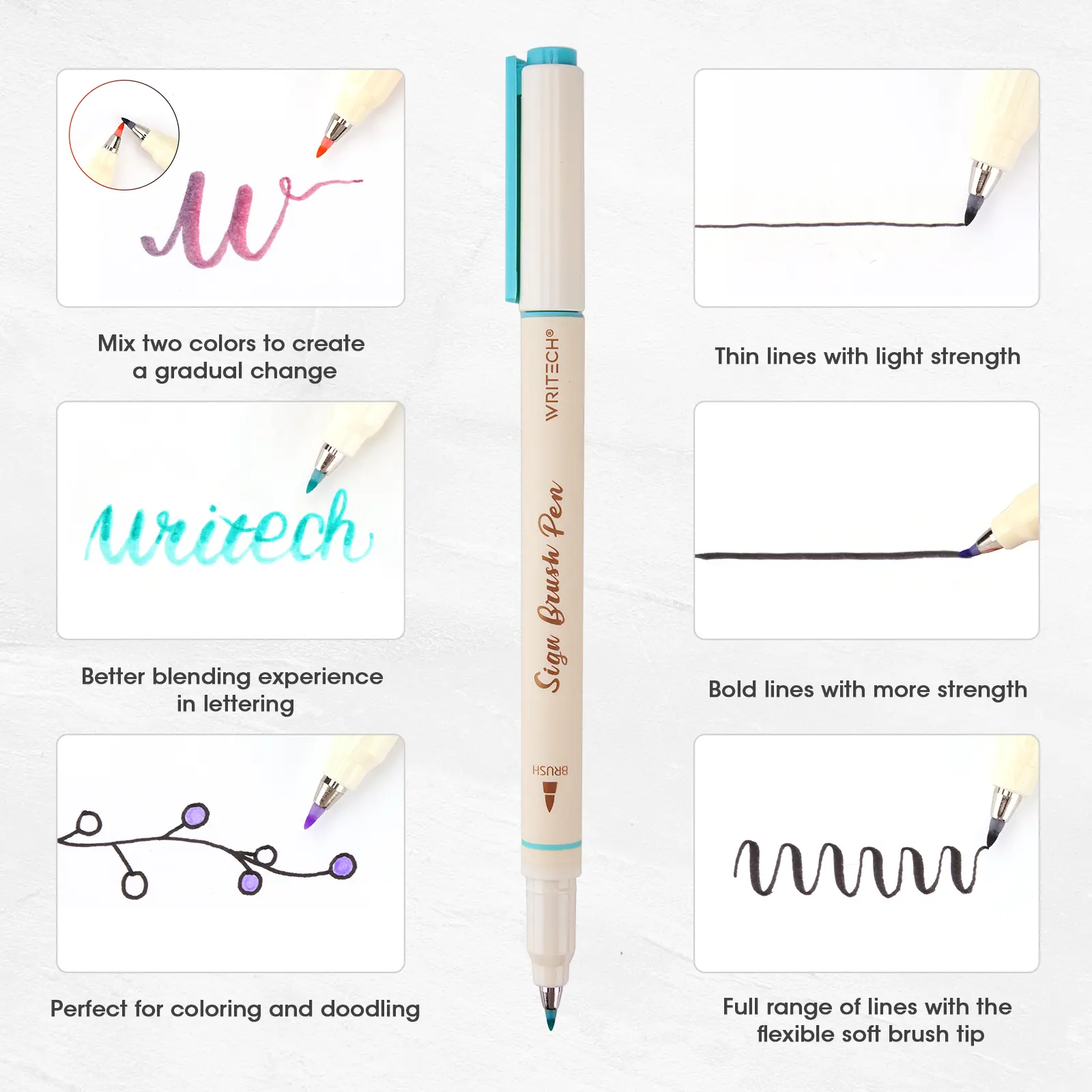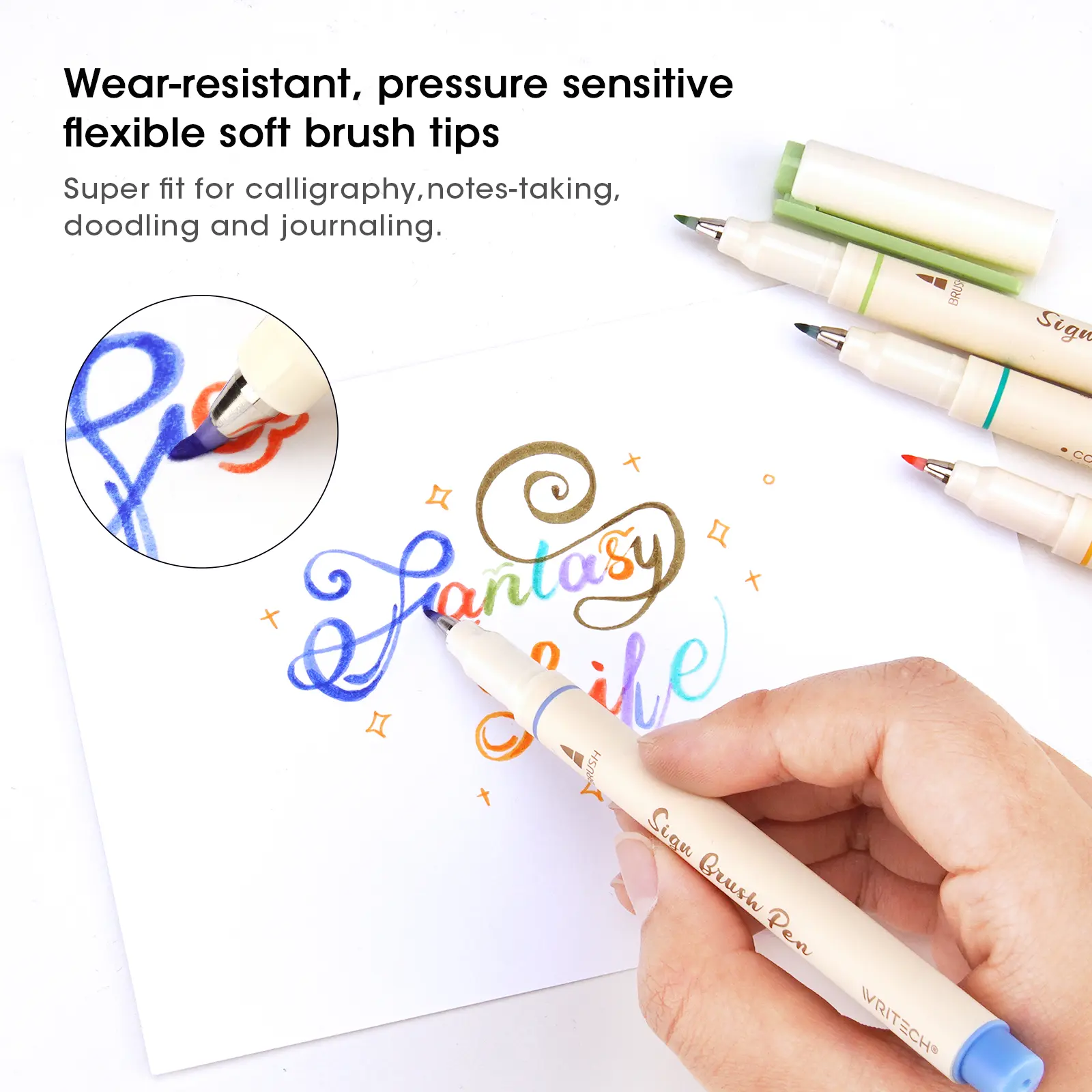 - Punta de pincel flexible y sensible a la presión.