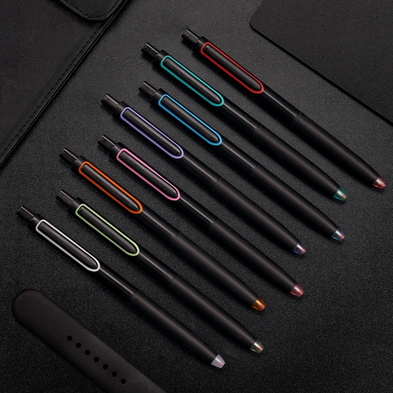 - Diseño de clip para bolígrafo tipo puerta de escotilla. Hacia arriba y hacia abajo cuando retraen los bolígrafos.