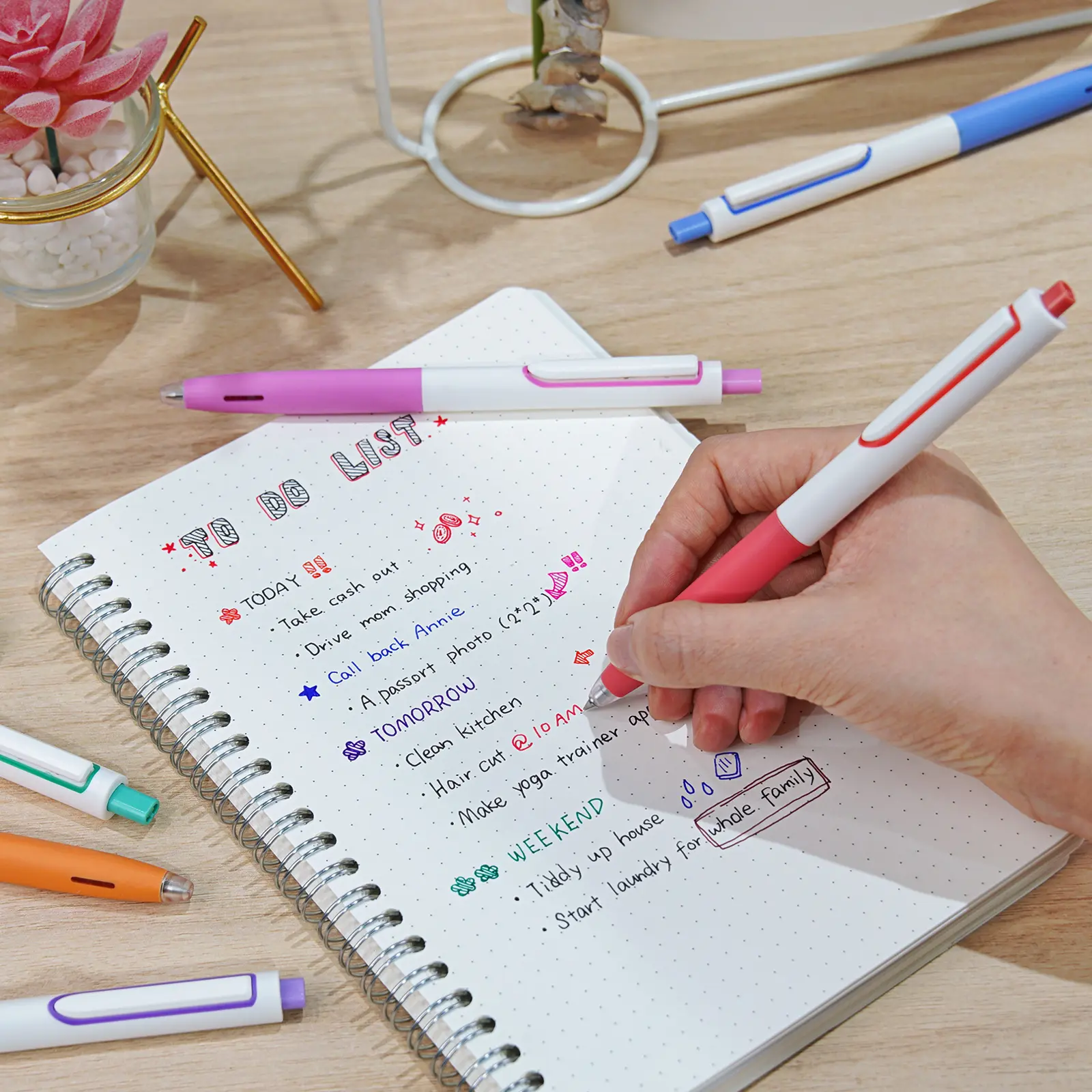 - Punta de doble bola de 0.5 mm con tinta de secado rápido, super suave y delicada, sin saltos, sin sangrado ni manchas.