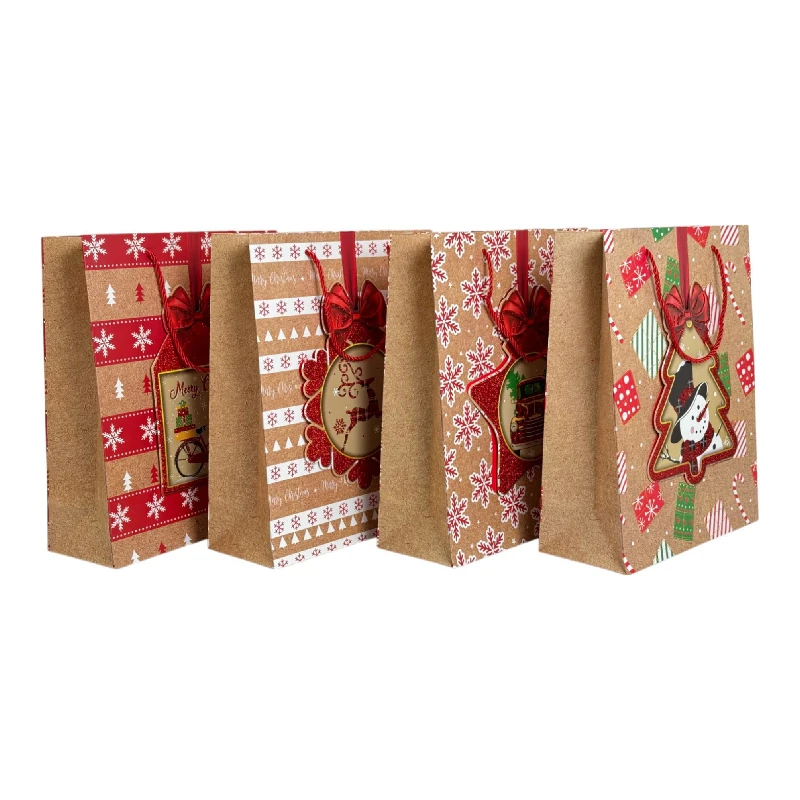 Haz que cada obsequio brille en esta temporada con las bolsas navideñas Merletto. Sus detalles dorados, lazos decorativos y diseños clásicos llenan de encanto tus regalos.