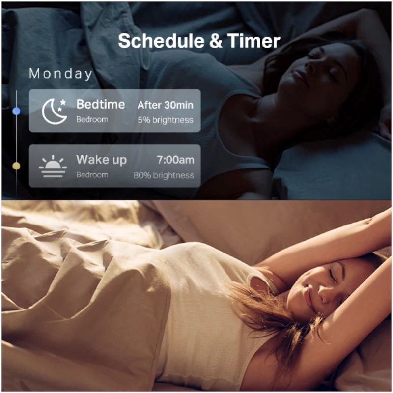 - Programación y temporizador: crear programaciones y cuente planes para encender / apagar con el brillo / color que establezca.