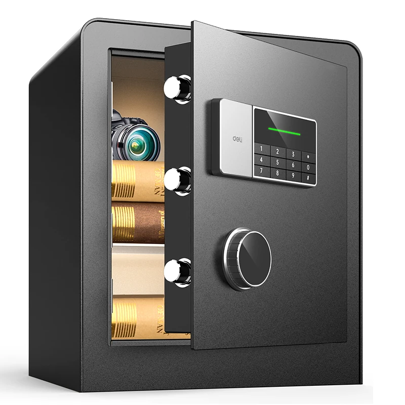 Protege tus objetos más valiosos con la caja fuerte digital Deli ET551, diseñada con tecnología avanzada y materiales de alta resistencia.