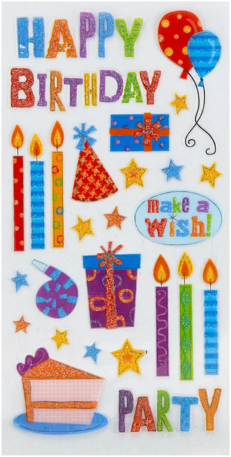Las pegatinas añaden el toque final perfecto a tus proyectos en papel. Pueden ser un adorno divertido, un acento caprichoso o un toque elegante para páginas de álbumes de recortes, tarjetas de felicitación, técnicas mixtas y más. Este paquete contiene pegatinas temáticas Sticko – Fiesta de cumpleaños, 27 piezas. Importado.