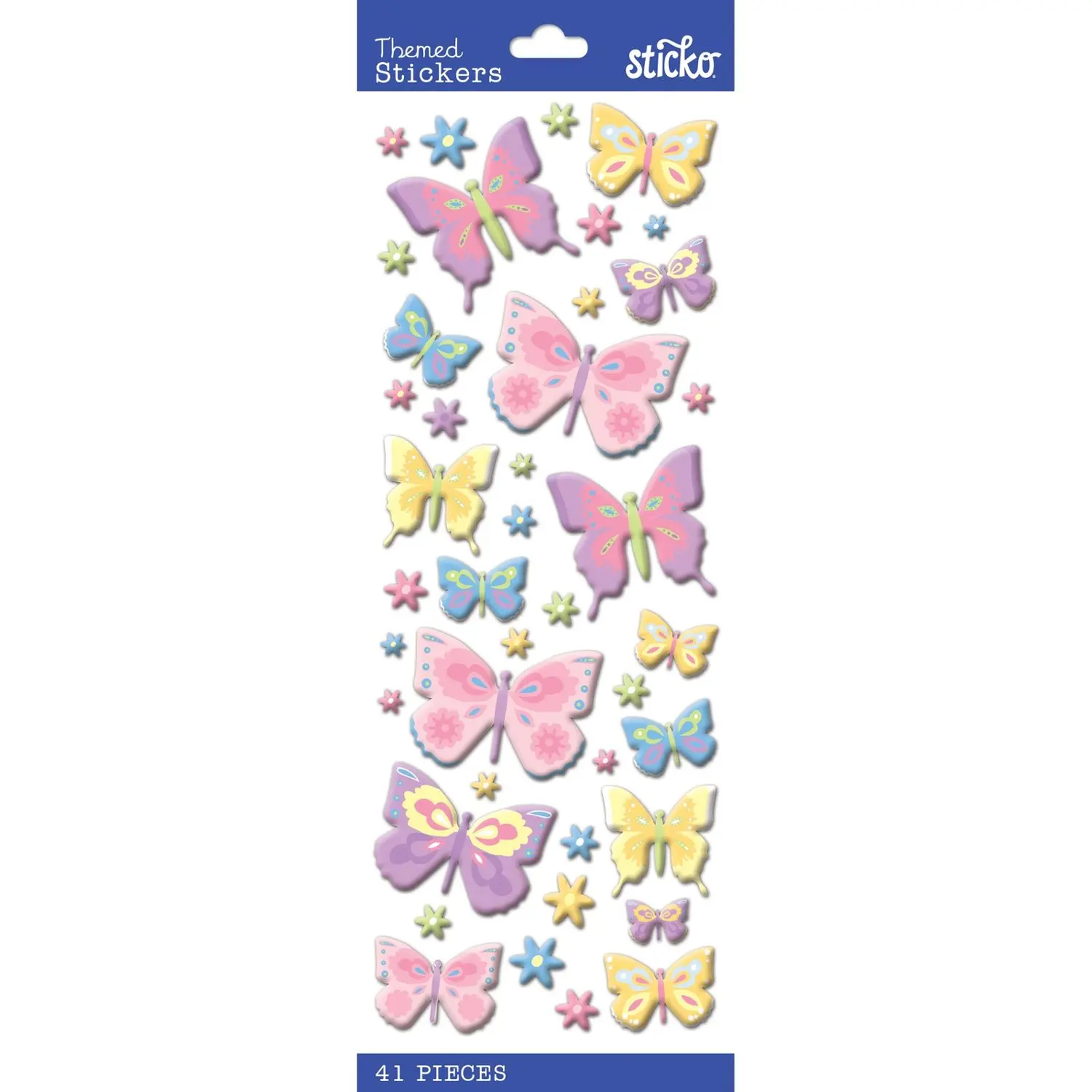 Las pegatinas añaden el toque final perfecto a tus proyectos en papel. Pueden ser un adorno divertido, un acento caprichoso o un toque elegante para páginas de álbumes de recortes, tarjetas de felicitación, técnicas mixtas y más. Este paquete contiene pegatinas temáticas Sticko – Mariposas, 41 piezas. Importado.