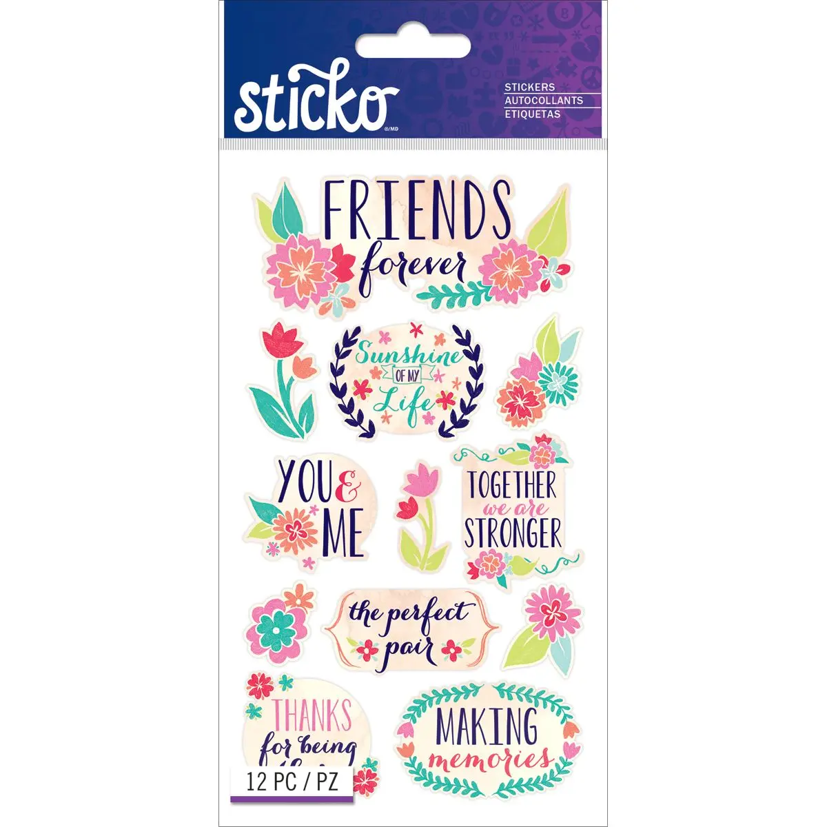 Las pegatinas añaden el toque final perfecto a tus proyectos en papel. Las pegatinas pueden ser un adorno divertido, un acento caprichoso o agregar un brillo elegante a páginas de álbumes de recortes, tarjetas de felicitación, técnicas mixtas y más. Este paquete contiene pegatinas Sticko – Amigos, 12 piezas. Importado.