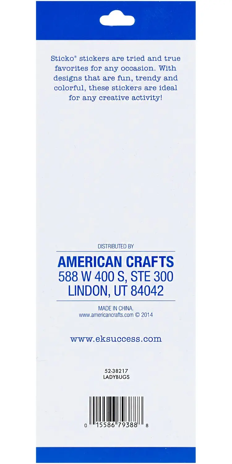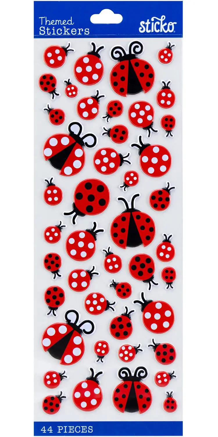 Las pegatinas añaden el toque final perfecto a tus proyectos en papel. Pueden ser un adorno divertido, un acento caprichoso o un toque elegante para páginas de álbumes de recortes, tarjetas de felicitación, técnicas mixtas y más. Este paquete contiene pegatinas temáticas Sticko – Mariquitas, 44 piezas. Importado.