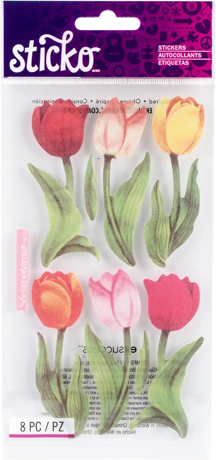 Las pegatinas añaden el toque final perfecto a tus proyectos en papel. Las pegatinas pueden ser un adorno divertido, un acento caprichoso o agregar un brillo elegante a páginas de álbumes de recortes, tarjetas de felicitación, técnicas mixtas y más. Este paquete contiene pegatinas Sticko Vellum – Tulipanes, ocho pegatinas. Importado.