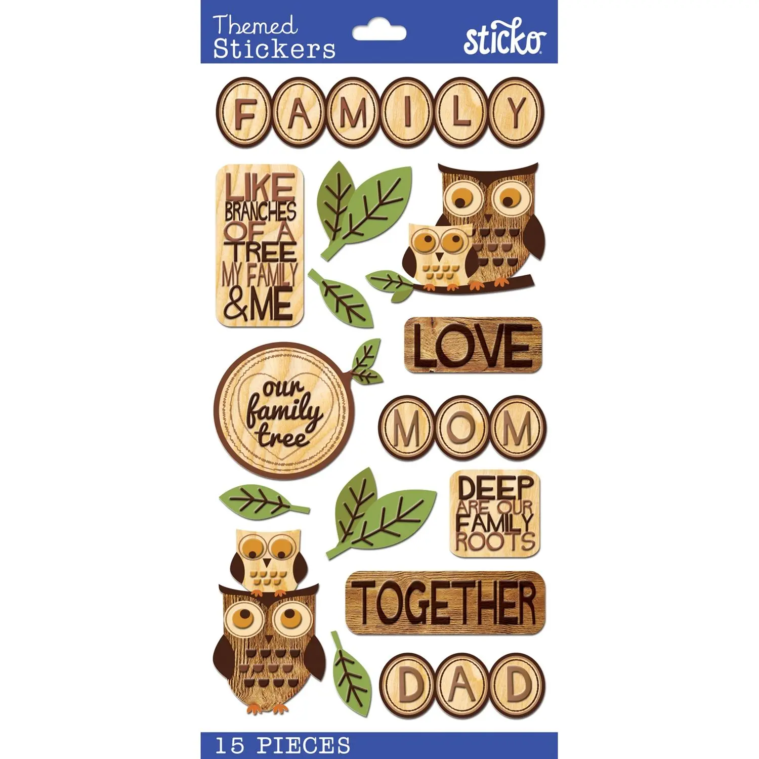 Las pegatinas añaden el toque final perfecto a tus proyectos en papel. Pueden ser un adorno divertido, un acento caprichoso o un toque elegante para páginas de álbumes de recortes, tarjetas de felicitación, técnicas mixtas y más. Este paquete contiene pegatinas temáticas Sticko – Familia de madera, 15 piezas. Importado.