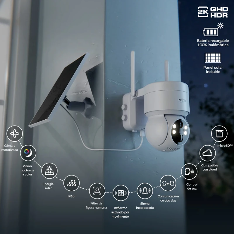 Camara Inteligente Para Exterior Wifi Con Panel Solar Night Vision Motorizada Nexxt