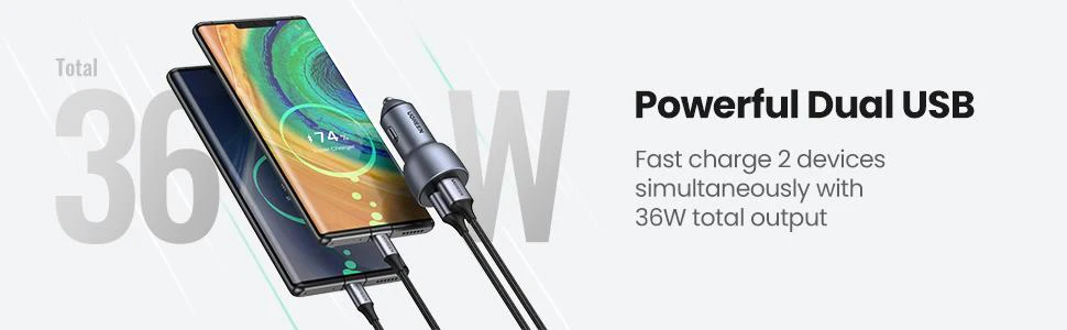 Cargador Para Carro 2Usb-A Gris 36W Carga Rapida Cd213 Ugreen
