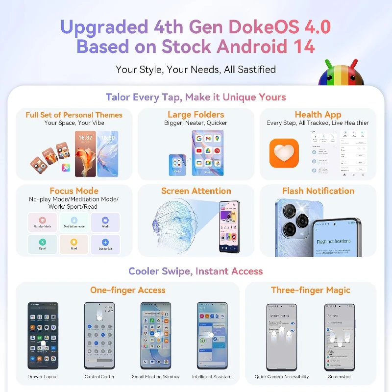 - Sistema Operativo: Android 14, DokeOS 4.0