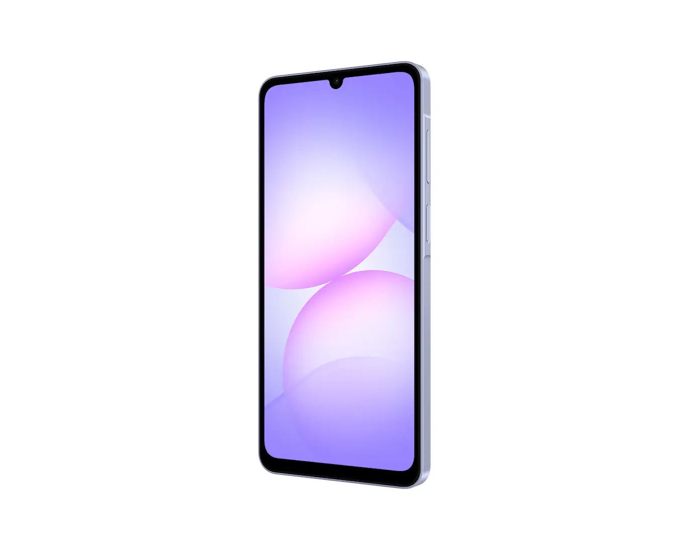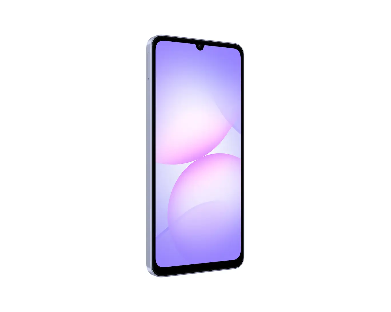 Mejora tu experiencia móvil con el diseño delgado de 7.6 mm de Galaxy A07 disponible en negro, violeta claro y verde.