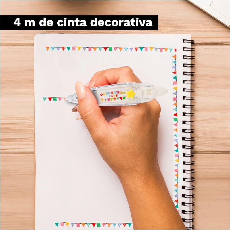 Dale vida a tus libretas, cartas o proyectos con esta cinta decorativa en formato roller. ¡Fácil de usar y con acabado mate!
