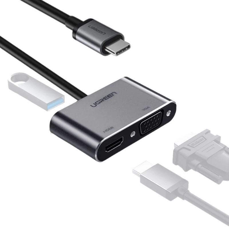 Convertidor Usb-C A Hdmi+Vga+Usb 3.0 Gris Cm162 Ugreen