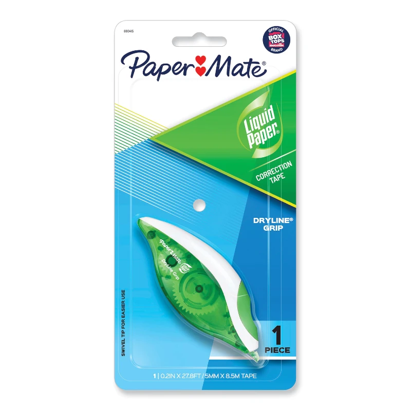 La cinta correctora Liquid Paper DryLine Grip de Paper Mate se aplica con suavidad y corrige al instante, sin necesidad de secarse. Ideal para corregir una o varias líneas, esta resistente cinta con reverso de polímero corrige rápidamente los errores sin dejar manchas.