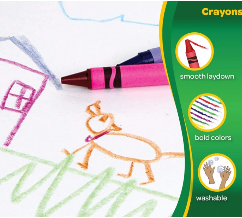 16 ct. Los crayones Crayola son la herramienta artística clásica para niños. Son los colores con los que han crecido generaciones. Los crayones Crayola están diseñados centrándose en el color verdadero, la suavidad y la durabilidad. Haga fluir esos jugos creativos con estos 16 colores clásicos: negro, azul, azul verde, azul violeta, marrón, rosa clavel, verde, naranja, rojo, rojo naranja, rojo violeta, violeta (púrpura), blanco, amarillo, amarillo verde. y amarillo anaranjado.