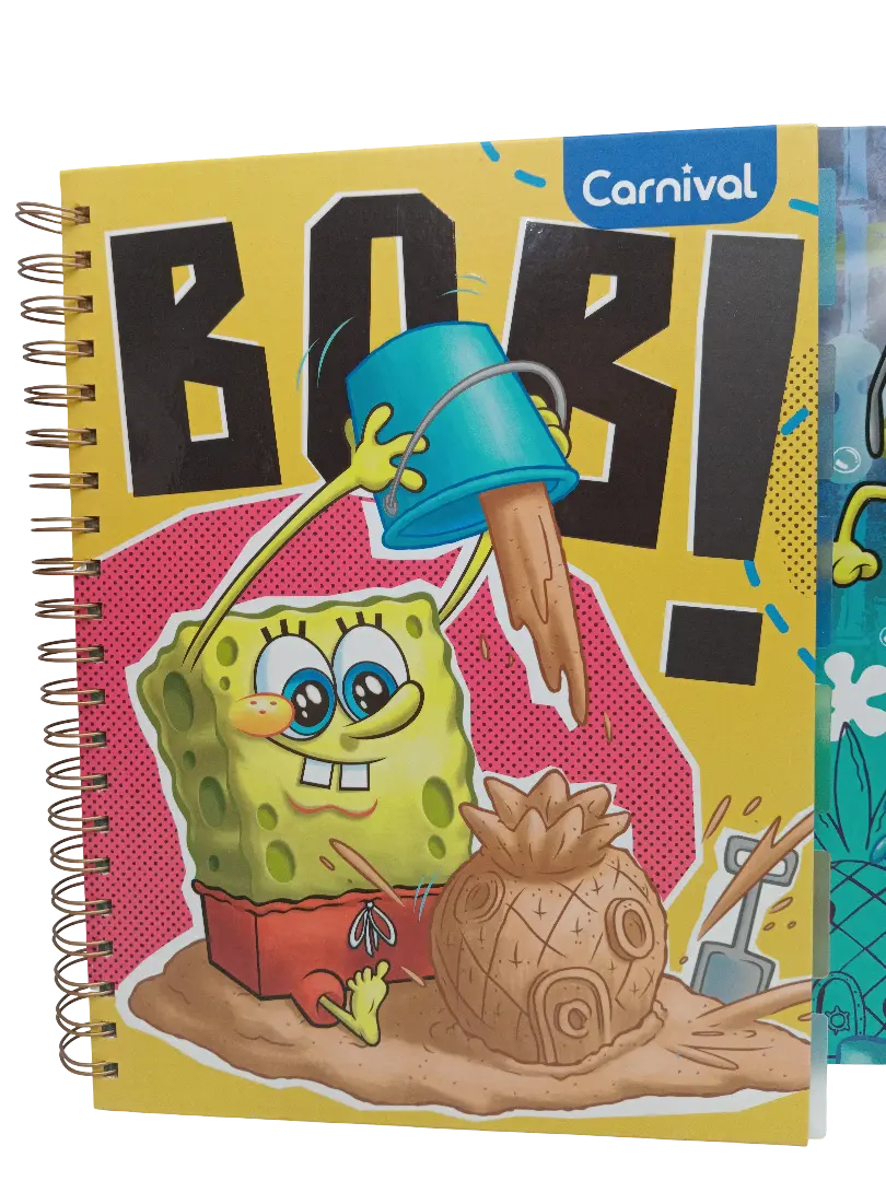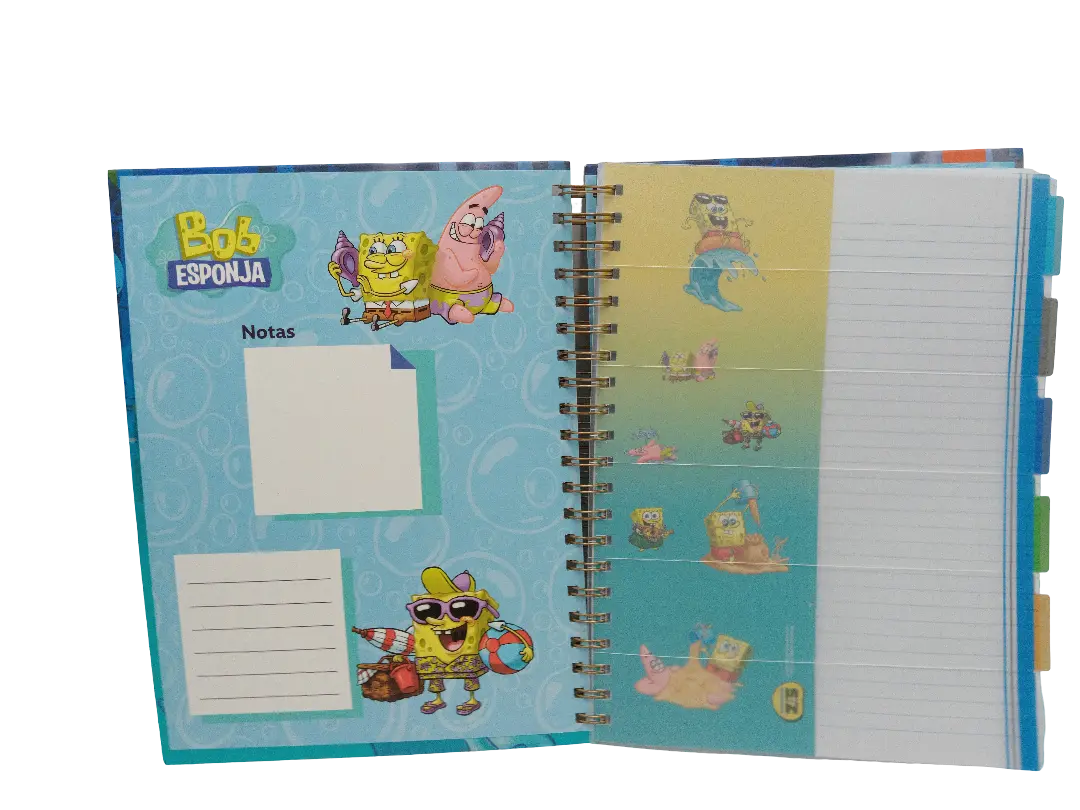 ¡La diversión de Fondo de Bikini llega al salón de clases! Este cuaderno de 3 materias con diseño exclusivo de Bob Esponja combina organización y creatividad en un formato práctico. Sus ilustraciones, separadores de colores y hojas decoradas lo convierten en el favorito de los estudiantes.