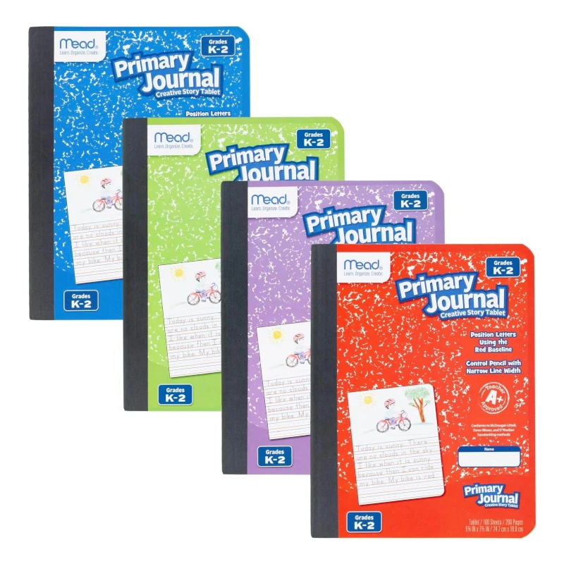 - El diario es apropiado para los grados K-2. Contiene 100 hojas a rayas primarias de doble cara que miden 7-1/2 x 9-3/4 pulgadas.