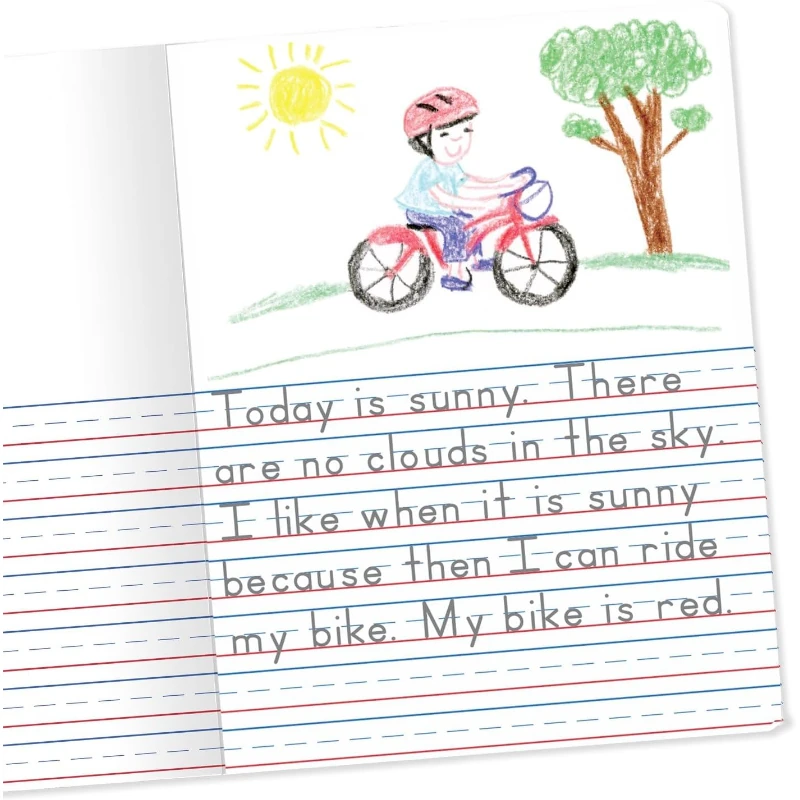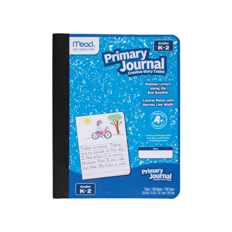 El diario es apropiado para los grados K-2. Contiene 100 hojas a rayas primarias de doble cara que miden 7-1/2 x 9-3/4 pulgadas.