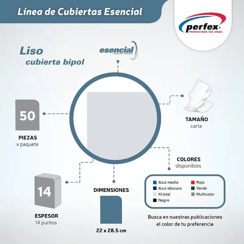 Cubierta Para Encuadernar Tamaño Carta Paquete50 Liso Esencial 14 Puntos Multicolor Perfex