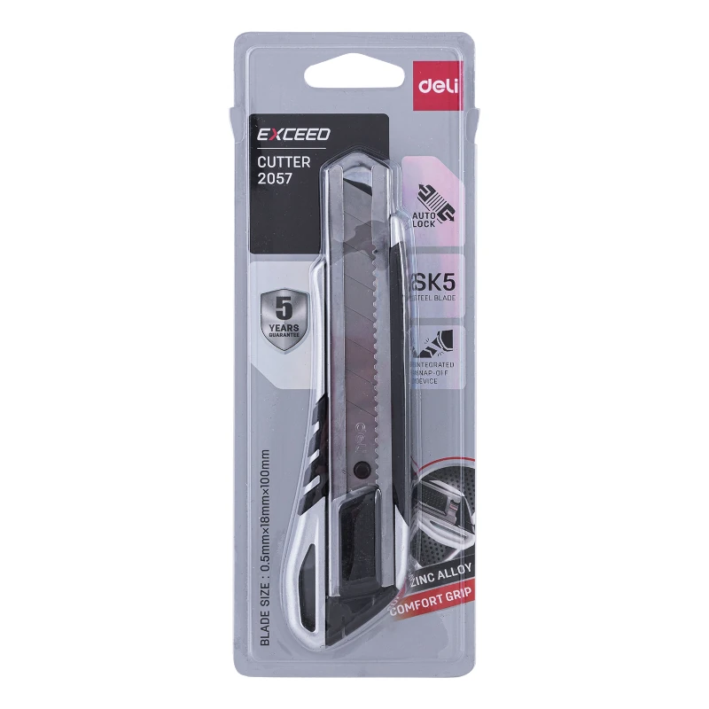 ¡Lleva tu trabajo de corte al siguiente nivel con el Cutter Profesional Deli Exceed 2057! Diseñado para ofrecer máxima precisión, seguridad y comodidad, este cutter es la herramienta ideal para profesionales del diseño, embalaje, manualidades y oficina.