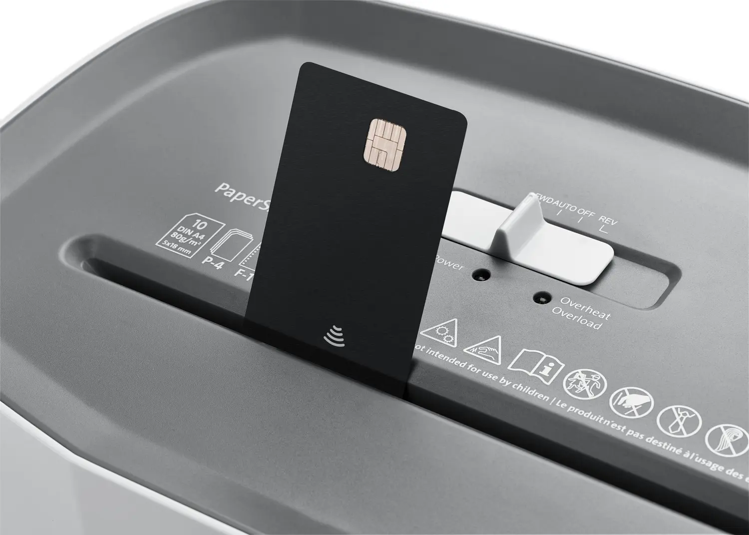 - Mecanismo separado para destruir de forma fiable CD y DVD en 4 tiras de 3,0 cm de anchura
