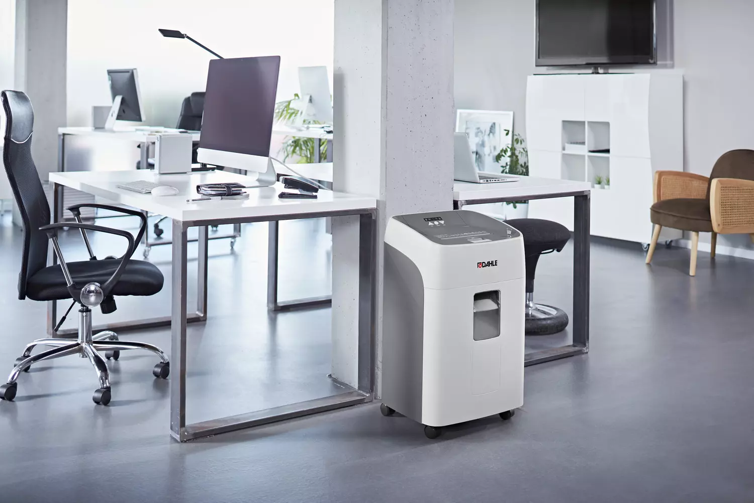 Destructora de documentos inteligente, con introducción automática del papel, para el uso junto al escritorio