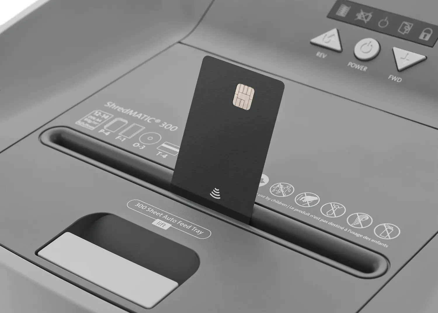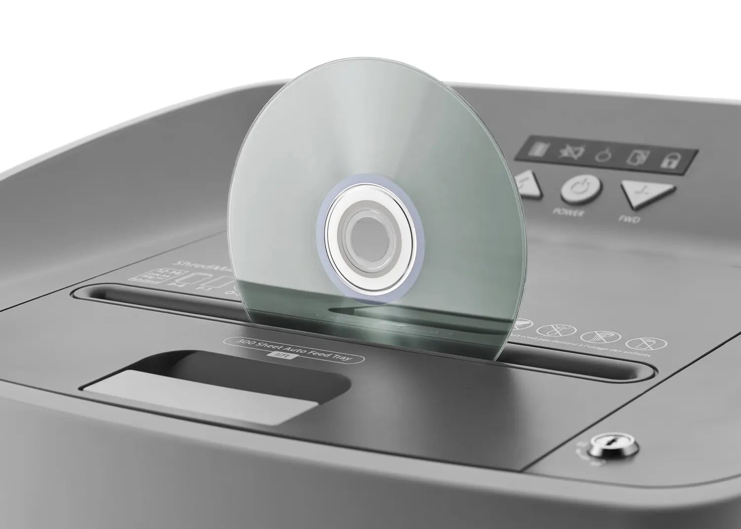 - La función Autofeed destruye hasta 300 hojas (80 g/m²) en una sola carga, con entrada del papel cerrable