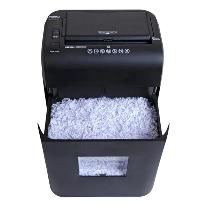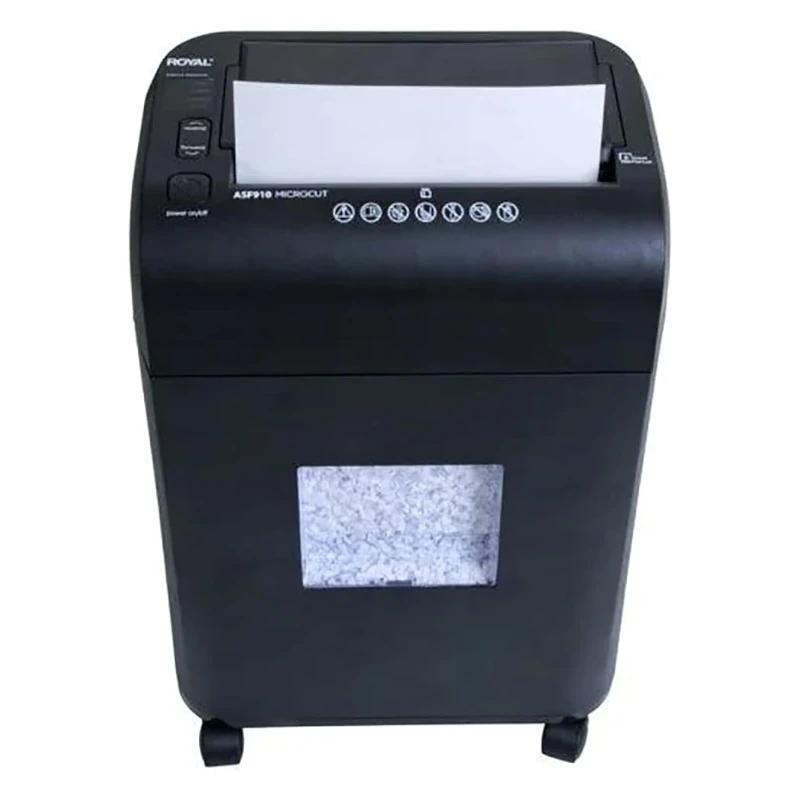 La trituradora automática de microcorte Royal ASF910 de 100 hojas puede destruir hasta 9 hojas de papel bond en modo de alimentación manual y 100 hojas en modo de alimentación automática.