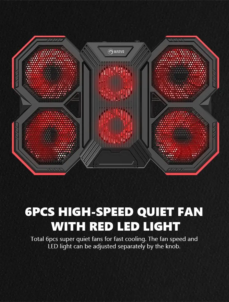 Disipador De Calor Laptop Marvo Gaming Usb Negro 6 Piezas Fn-41