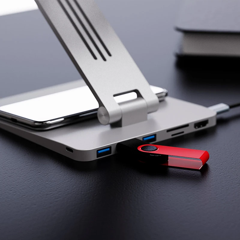 Docking Station Klipx 9 en 1 Con Soporte Para Laptop Con Carga Inalambrica