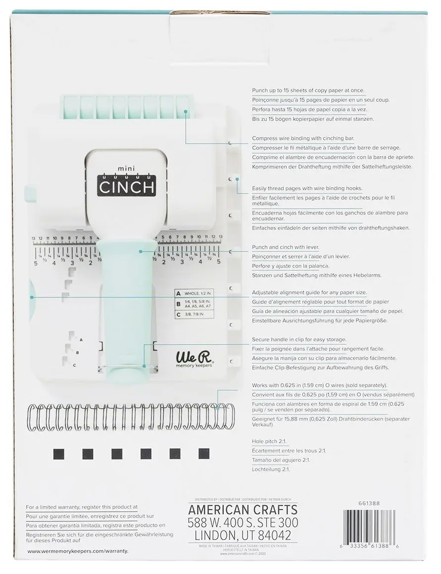La encuadernadora de libros Cinch de We R Memory Keepers hace que la encuadernación de libros sea rápida, fácil y asequible. ¡Y ahora el Cinch viene en un nuevo y adorable tamaño mini! Es la mejor herramienta de encuadernación del mercado para proyectos del hogar, la escuela y la oficina. Haga agujeros perfectos con espaciado de agujeros personalizable en proyectos de cualquier tamaño. Mini Cinch es ideal para crear miniálbumes, libros de recetas, diarios y agendas personalizados, presentaciones y más. Este paquete incluye una encuadernadora de libros Mini Cinch. Importado.