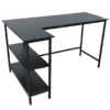 Diseño amplio y funcional para trabajar, estudiar o montar tu setup. Su acabado café oscuro y repisas laterales lo hacen práctico y elegante.