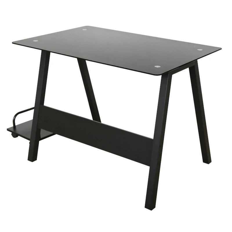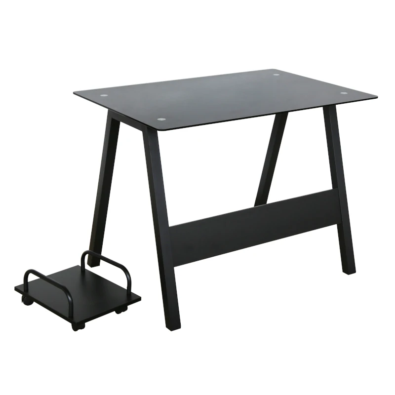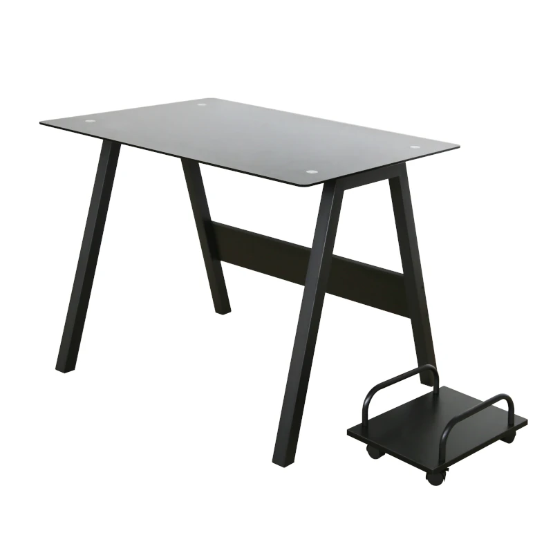 Con una superficie de vidrio templado de 120 cm de ancho, ofrece espacio suficiente para monitores, laptops y materiales de oficina. Su estructura metálica robusta garantiza estabilidad, mientras que el porta CPU lateral con ruedas permite mantener tu equipo seguro y accesible, facilitando el orden y la ventilación.