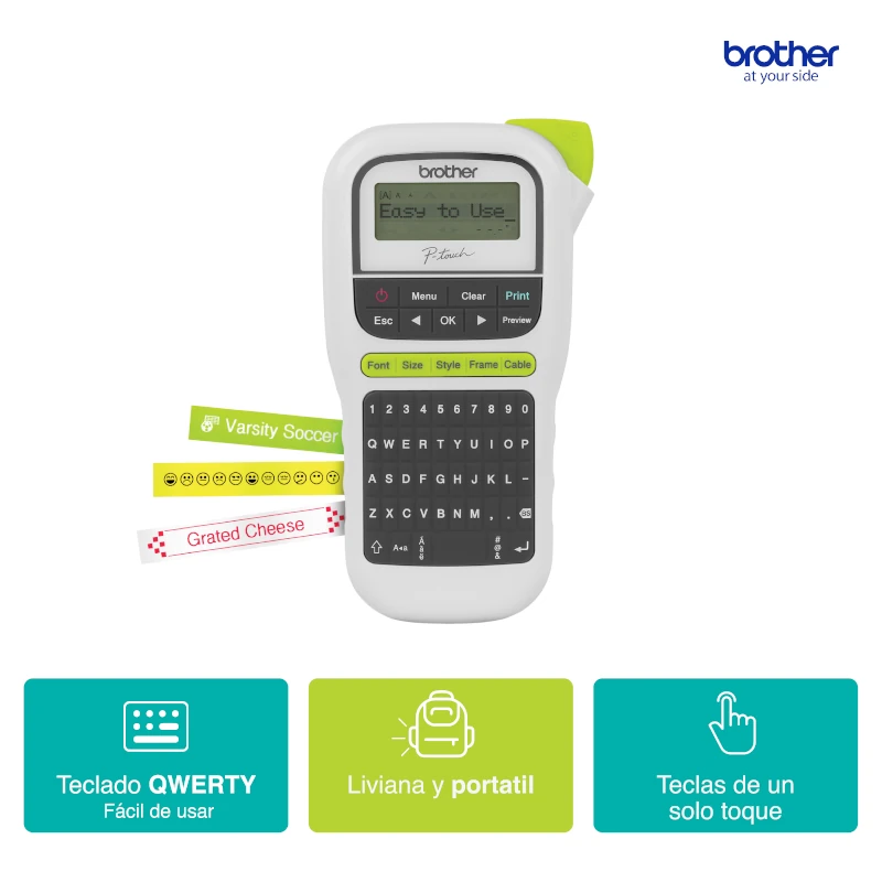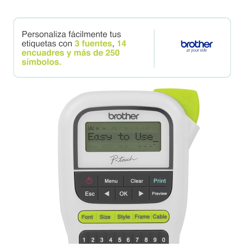 La rotuladora PT-H110 color blanco es ideal para organizar tu hogar, tu oficina en casa o cualquier ámbito de tu vida. Cuenta con un teclado QWERTY, un diseño familiar y ergónomico con teclas prácticas estilo PC de un solo toque para una entrada de texto simple y rápida. Presenta una pantalla gráfica con vista previa para revisar tus etiquetas antes de imprimirlas. Personalizá fácilmente tus etiquetas con 3 fuentes, 14 encuadres y más de 250 símbolos. También es útil para organizar tus cables gracias a la función de etiquetado de cable. Creá etiquetas con 1 o 2 renglones de texto. La memoria integrada guarda hasta 15 etiquetas para reimprimirlas con rapidez en el momento que desees. Utilizá las cintas originales Brother «TZe» laminadas, autoadhesivas y duraderas de hasta 12 mm de ancho. Funciona con 6 pilas «AAA» o con un adaptador opcional de CA (vendidos por separado) para una mayor flexibilidad de uso. Incluye una cinta inicial de 12 mm negra sobre blanco.