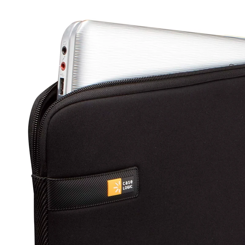 La funda para computadora portátil de 14″ de Case Logic está diseñada para contener dispositivos que miden hasta 13,5 x 1,7 x 9,7″. Es una funda protectora sin costuras, acolchada con espuma, hecha de espuma EVA (etileno acetato de vinilo). Cuenta con un cierre de cremallera en la parte superior y correas tejidas texturizadas en los bordes. Con solo 181,4 g (0,4 lb), esta funda liviana puede llevarse sola o guardarse dentro de su bolso de hombro más grande.