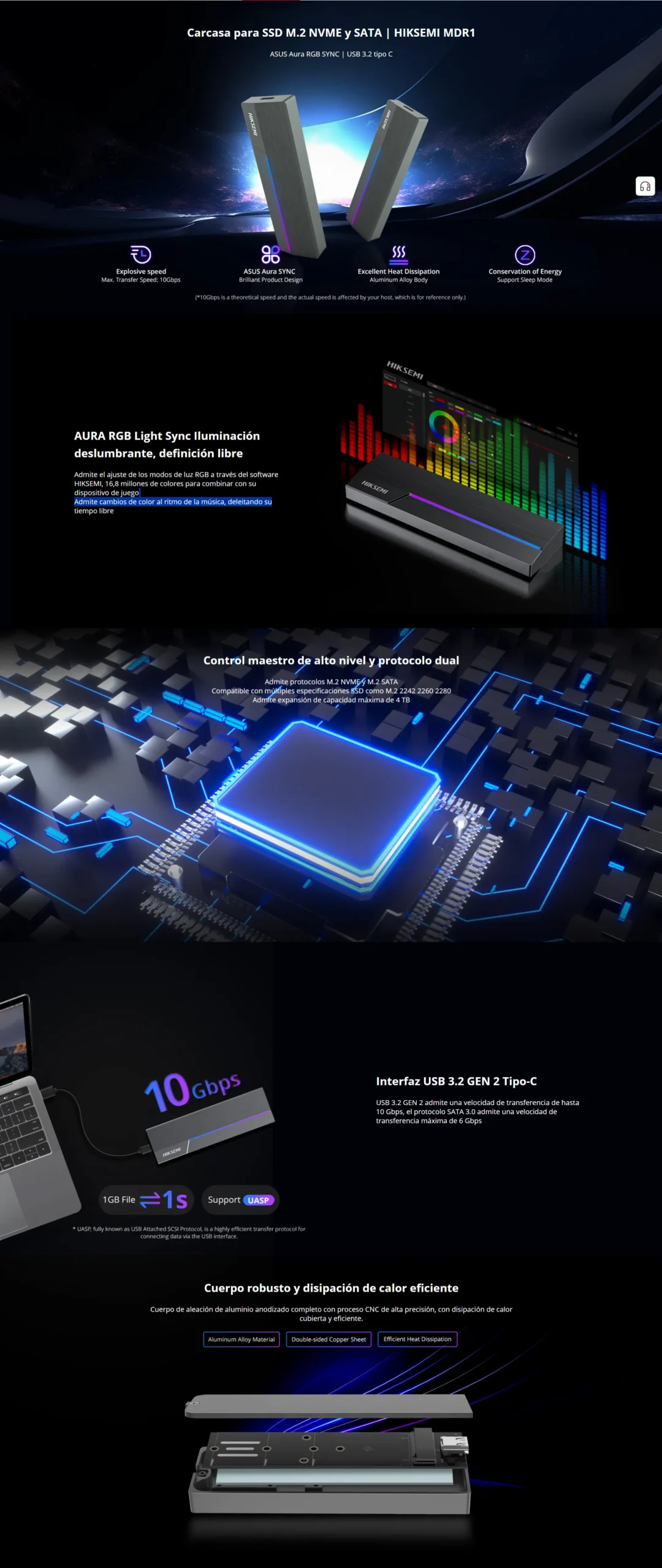 - Interfaz USB 3.2 GEN 2 Tipo-C